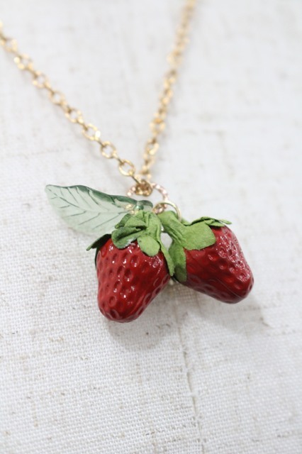 Emily Temple cute / いちごネックレス 赤X緑 I-26-03-08-004-ET-AC-SA-ZI