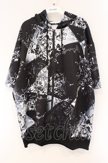 NieR Clothing / 転写ptハーフZIPプルオーバー ブラック×ホワイト O-26-03-10-109-PU-TO-IG-OS