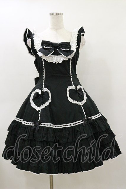 Angelic Pretty / Cute Heartジャンパースカート Free ブラック H-26-03-12-068-AP-OP-NS-ZH