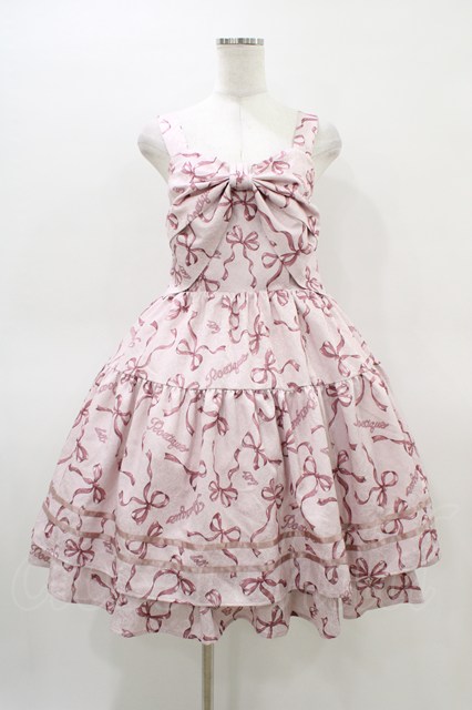 axes femme POETIQUE / リボン柄ドールジャンパースカート M ピンク H-26-03-14-047-AX-OP-NS-ZH