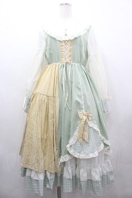 With Puji / 鳴谷ワンピース M グリーン×イエロー I-26-03-10-046-EL-OP-SA-ZI [戻る]