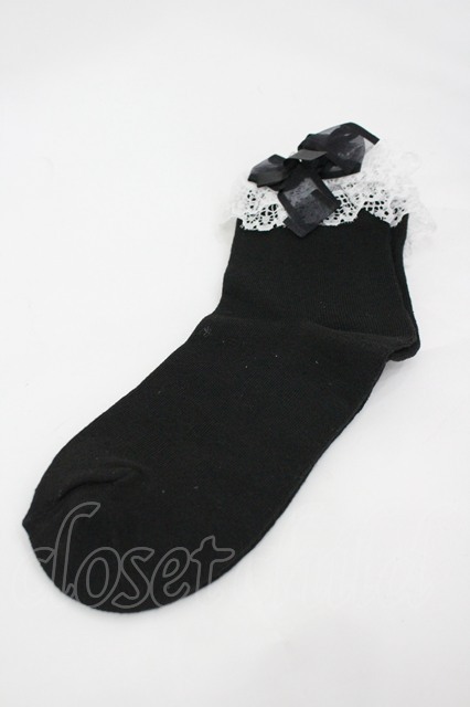 Hoshibako Works / レースリボンソックス 黒X白 I-26-03-10-124-LO-ZA-SA-ZI