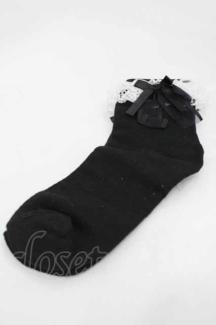 Hoshibako Works / レースリボンソックス 黒X白 I-26-03-10-125-LO-ZA-SA-ZI