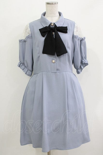 majoretty / レース切替リボンワンピース L ブル‐ H-26-03-13-1020-GO-OP-NS-ZH
