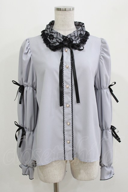 majoretty / レースカラーリボンブラウス L ブルー H-26-03-13-1038-GO-BL-NS-ZH
