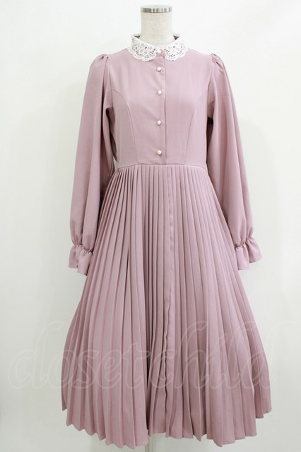 m petit by misako / AM*レースエリプリーツワンピース S ピンク H-26-03-13-1015-LO-OP-NS-ZH