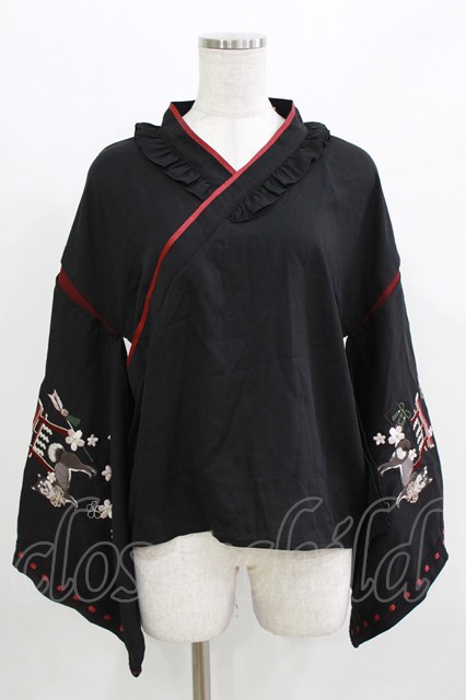Amavel / 柴犬神社の春詣 和風ブラウス Free ブラック H-26-03-13-1046-CA-BL-NS-ZH