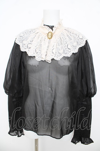 axes femme NOSTALGIE / レース襟付シフォンブラウス F 黒 Y-26-03-13-002-AX-BL-SZ-ZY