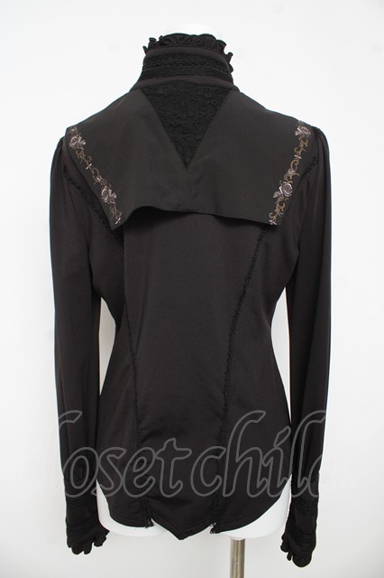 Ozz oneste / 薔薇刺繍立ち襟ブラウス 黒 Y-26-03-13-063-OO-BL-SZ-ZY