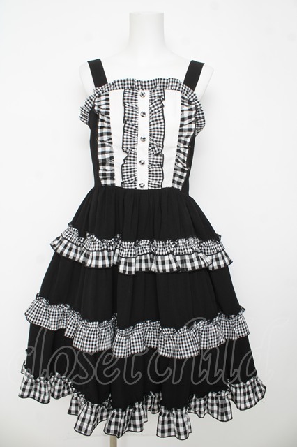 axes femme kawaii / カントリーチェックジャンスカ M 黒 Y-26-03-13-094-AX-OP-SZ-ZY