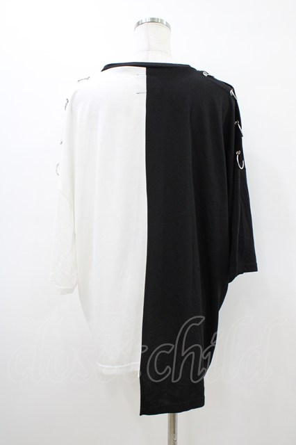 LISTEN FLAVOR / ツートンベショルダーリングアシメトップス ブラック×ホワイト H-26-03-15-052-PU-TO-KB-ZH [戻る]