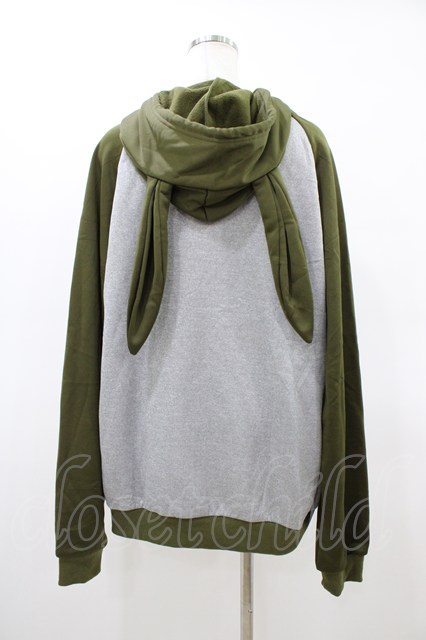 NieR Clothing / うさ耳付きTWO-TONE ZIPパーカー カーキ×グレー H-26-03-15-056-PU-TO-KB-ZH