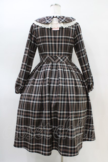 Melody BasKet / リボンとレースカラーのタータンチェックワンピース M ブラウン H-26-03-15-018-LO-OP-KB-ZH