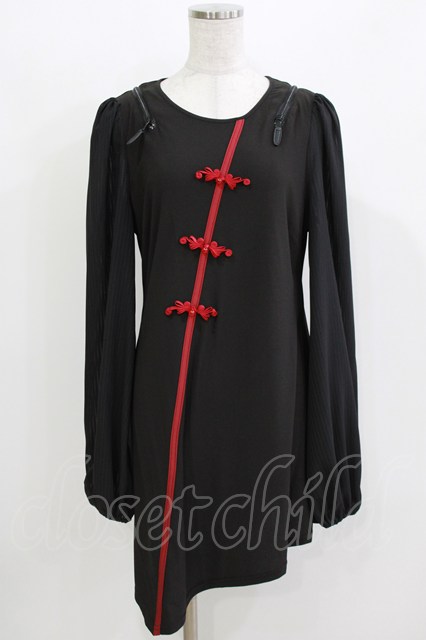 Qutie Frash / チャイナパフスリーブチュニック 黒×赤 H-26-03-14-1053-QU-TO-KB-ZH