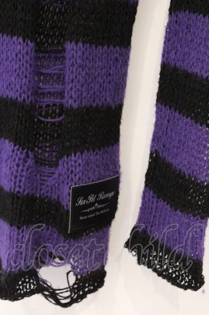 SEX POT ReVeNGe / ボーダーデストロイニットソー パープルxブラック O-26-03-12-1019-SP-TO-YM-OS