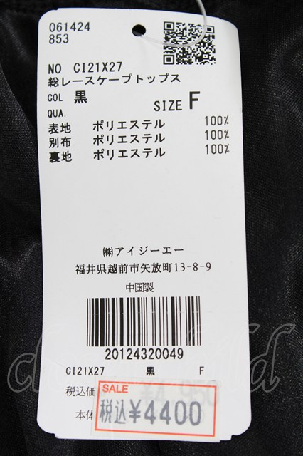axes femme / 総レースケープトップス ブラック T-26-03-17-019-AX-TO-SA-ZT [戻る]