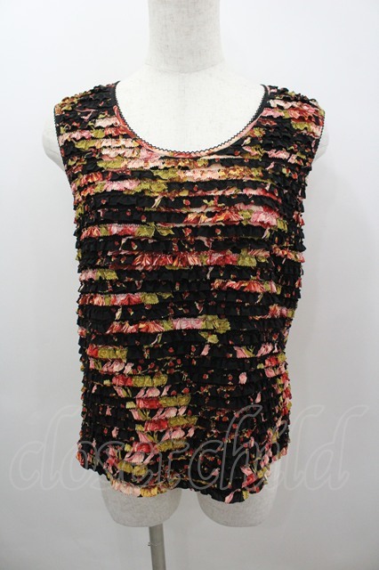 KANEKO ISAO / フラワーブーケリボンノースリーブブラウス ブラック I-26-03-12-025-EL-BL-SA-ZI [戻る]