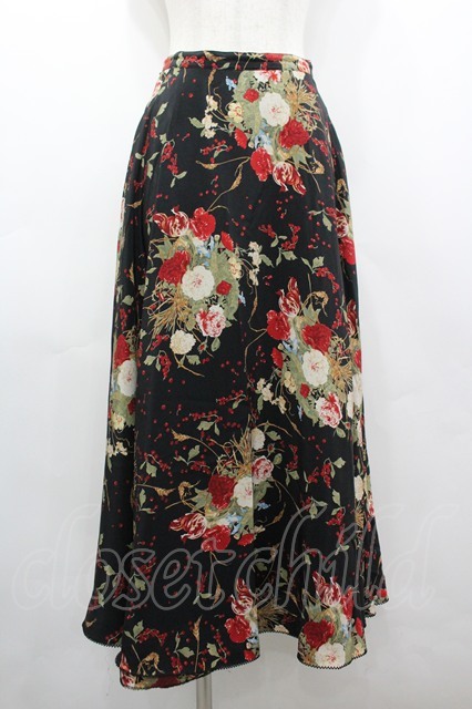 KANEKO ISAO / 赤い木の実とブーケ柄スカート ブラック I-26-03-12-081-EL-SK-SA-ZI [戻る]