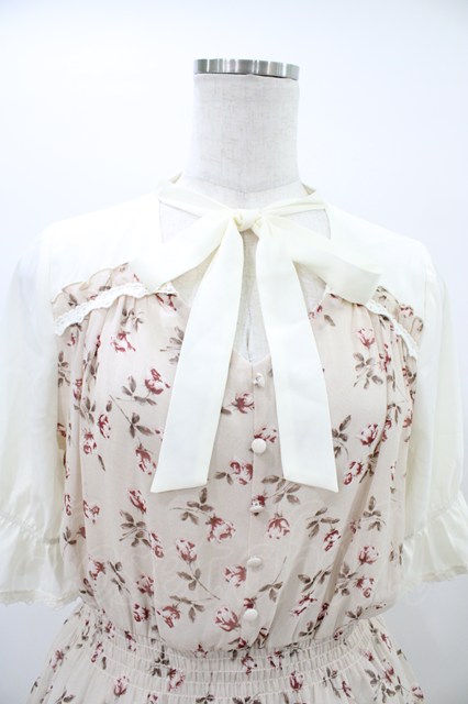 axes femme / チョーカーリボンデザイン花柄ワンピース M アイボリー H-26-03-15-1011-AX-OP-NS-ZH