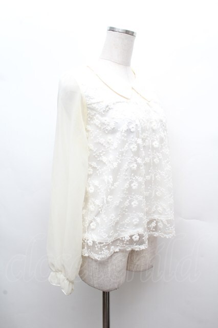 axes femme / 袖シャーリングレースプルオーバー アイボリー S-26-03-14-014-AX-TO-HR-ZS