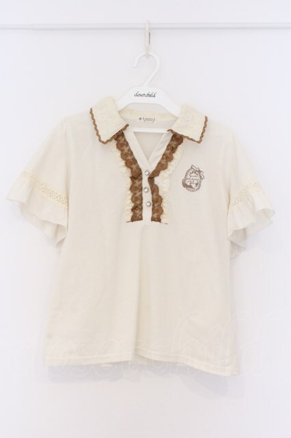 axes femme / ネコ刺繍ポロシャツ M アイボリー O-26-03-14-1084-AX-TO-IG-OS