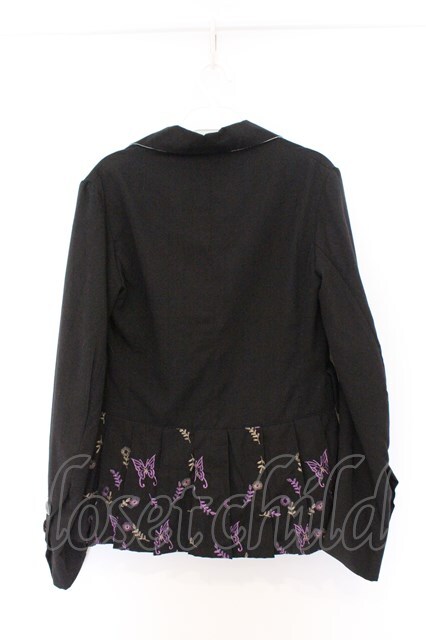 h.naoto Blood / バタフライ刺繍プリーツジャケット ブラック×パープル O-26-03-14-1049-HN-JA-IG-OS