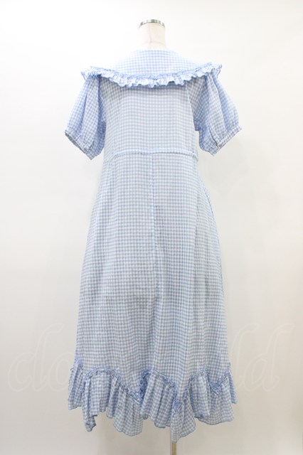 merry jenny / フリルカラーギンガムワンピース ブルー H-26-03-17-1026-LO-OP-KB-ZH