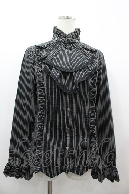 ALGONQUINS / ジャボ付きスタンドカラーストライプブラウス 1 黒×白 I-26-03-14-020-AL-BL-TE-ZI [戻る]