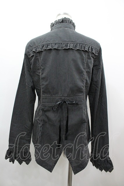 ALGONQUINS / ジャボ付きスタンドカラーストライプブラウス 1 黒×白 I-26-03-14-020-AL-BL-TE-ZI