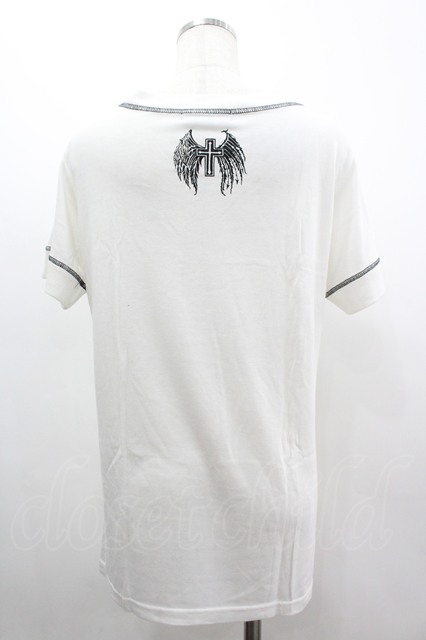 ALGONQUINS / 骸骨プリント半袖カットソー 白X黒 I-26-03-14-033-AL-TO-SA-ZI