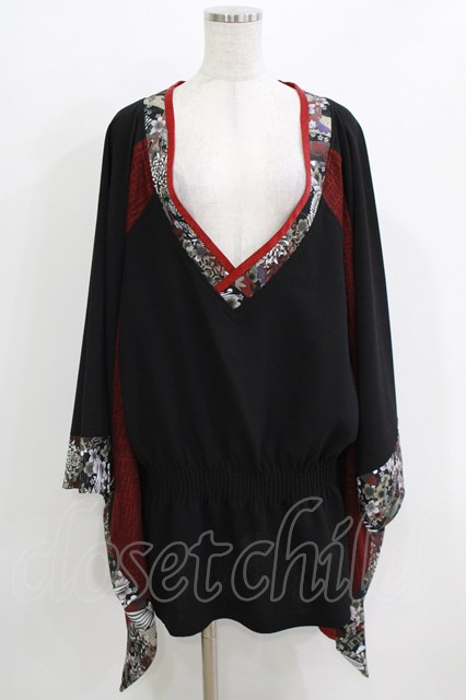 Qutie Frash / リボン帯付き着物チュニック 黒×赤 H-26-03-18-036-QU-TO-KB-ZH [戻る]