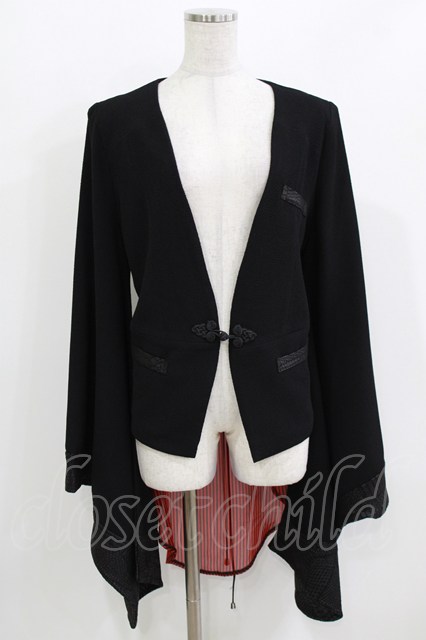 Qutie Frash / 着物袖ジャケット 黒×黒赤ストライプ H-26-03-18-028-QU-JA-KB-ZH
