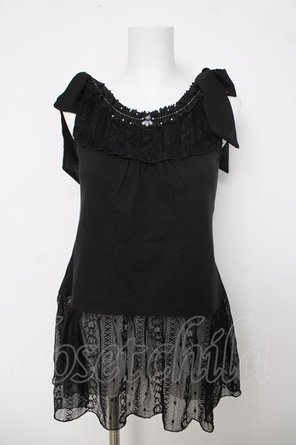 axes femme / 肩リボンロングインナー 黒 Y-26-03-18-001-AX-TO-SZ-ZY