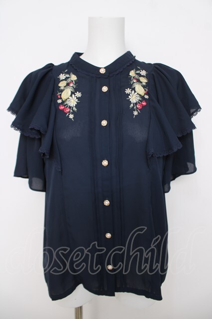 axes femme / ミックスフルーツ刺繍ブラウス F 紺 Y-26-03-18-012-AX-BL-SZ-ZY