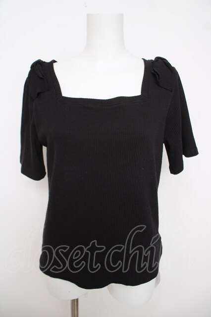 axes femme / リボン付スクエアネックプルオーバー F 黒 Y-26-03-18-053-AX-TO-SZ-ZY