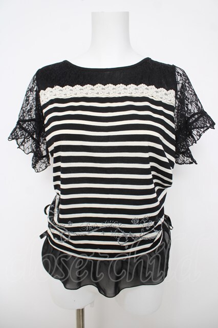 axes femme / マリンプリントボーダープルオーバー M 黒 Y-26-03-18-056-AX-TO-SZ-ZY