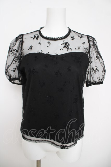 An MILLE / フロッキー半袖トップス 黒 Y-26-03-18-077-EL-TO-SZ-ZY