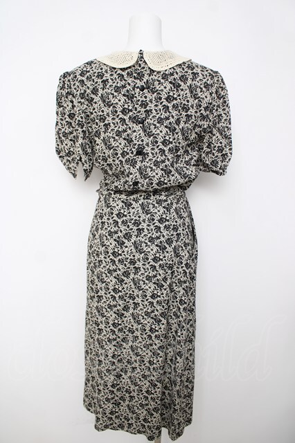 INGEBORG / バラ柄襟レースワンピース F オフ×黒 Y-26-03-18-156-LO-OP-SZ-ZY