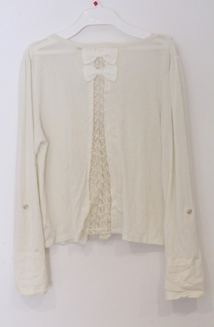 axes femme / 後ろレース切り替えカーディガン アイボリー O-26-03-16-035-AX-TO-IG-OS
