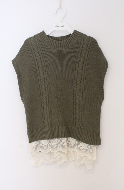 axes femme / 裾チュールレースニットベスト M グリーン O-26-03-16-071-AX-TO-IG-OS [戻る]