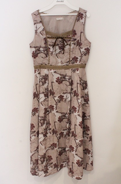 axes femme / ヴィンテージマップ柄ワンピ M ベージュ O-26-03-16-052-AX-OP-IG-OS
