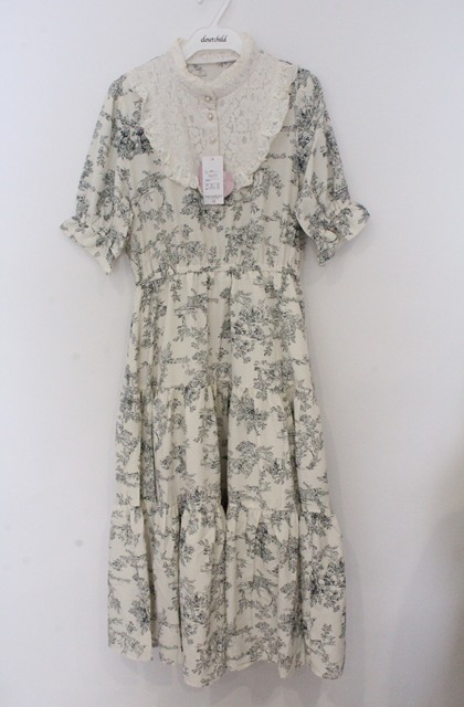 m petit by misako / TT*AMトワルドジュイワンピース L アイボリー×グリーン O-26-03-16-027-LO-OP-OW-OS