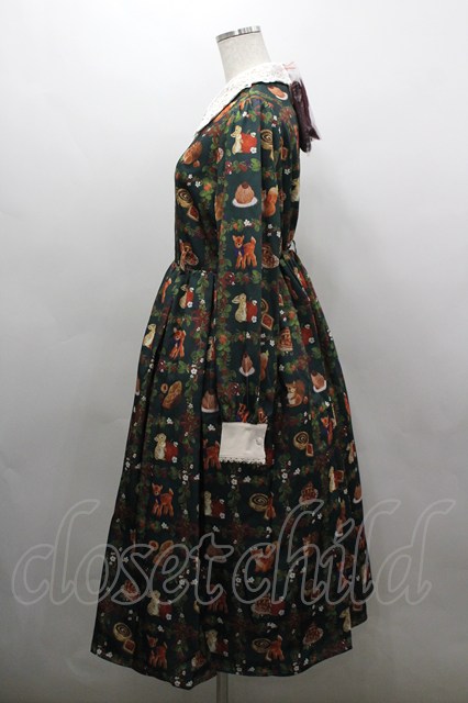 axes femme kawaii / 森のケーキ屋さん柄ワンピース M グリーン I-26-03-16-072-AX-OP-SA-ZI