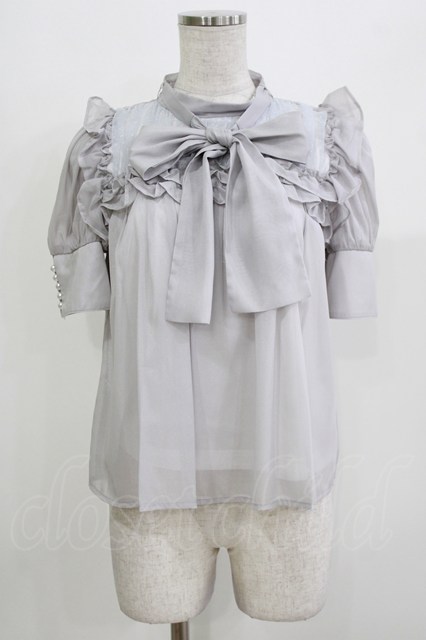 pium / スクエアフリルシアーラメ半袖ブラウス Free グレー H-26-03-21-044-0-BL-NS-ZH