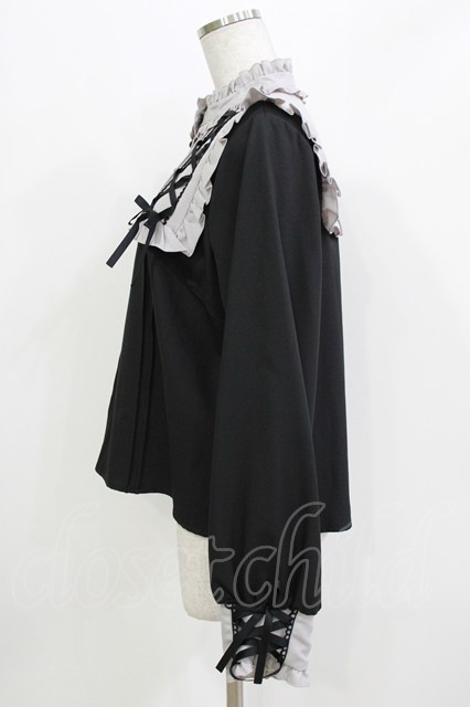 DearMyLove / レースアッフヨークフリルブラウス LL ブラック/グレー H-26-03-21-050-EL-BL-NS-ZH