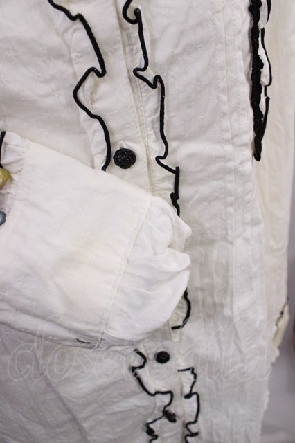 axes femme / 配色フリルブラウス M オフ/ブラック H-26-03-18-1030-AX-BL-NS-ZH