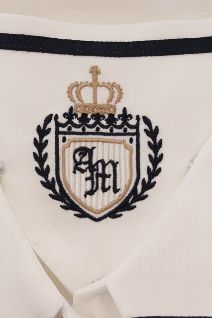 Amavel / Crown Emblemスクエアセーラーブラウス シロ×ネイビー O-26-03-19-033-CA-BL-IG-OS