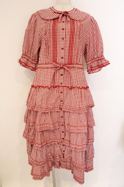 alcali / alcali × misako aoki/コットンギンガム前あきワンピース アカ O-26-03-19-090-LO-OP-OW-OS