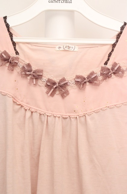 axes femme / BACKリボンタンクトップ M ピンク×ブラウン O-26-03-18-026-AX-TO-IG-OS