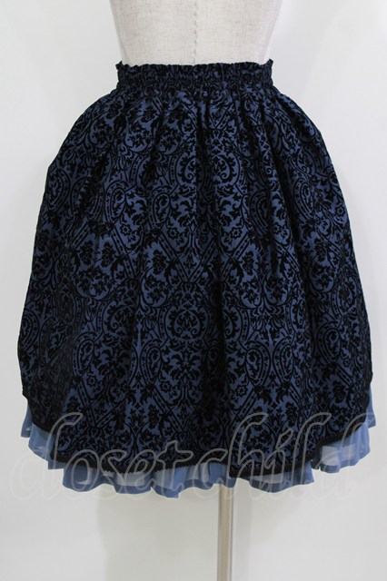 EXCENTRIQUE / フロッキーダブルスカート ブラック×ネイビー H-26-03-22-016-EL-SK-KB-ZH